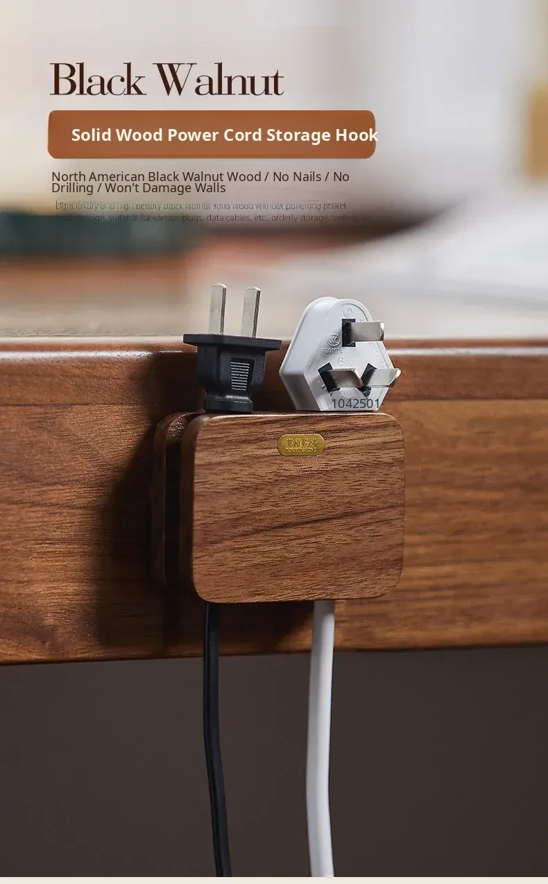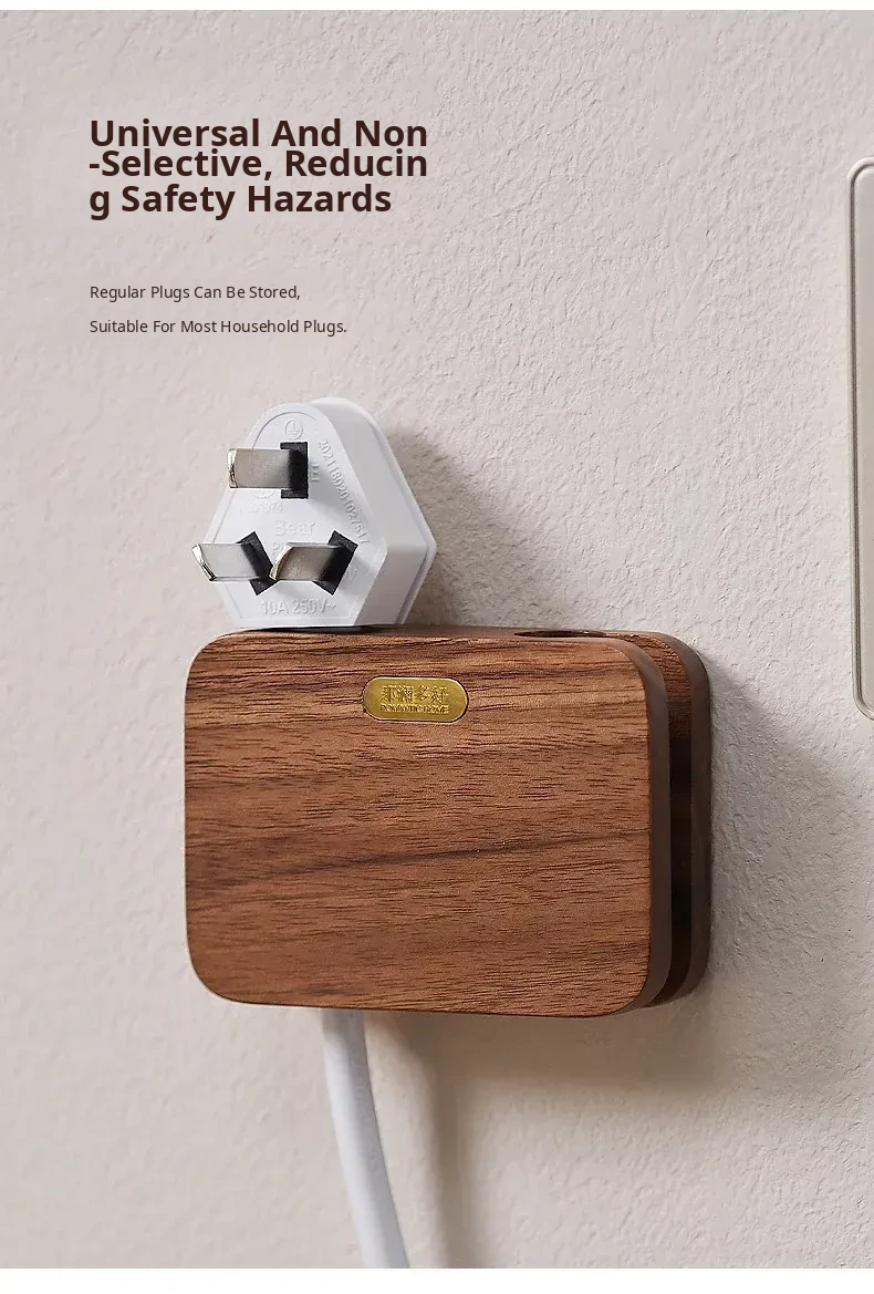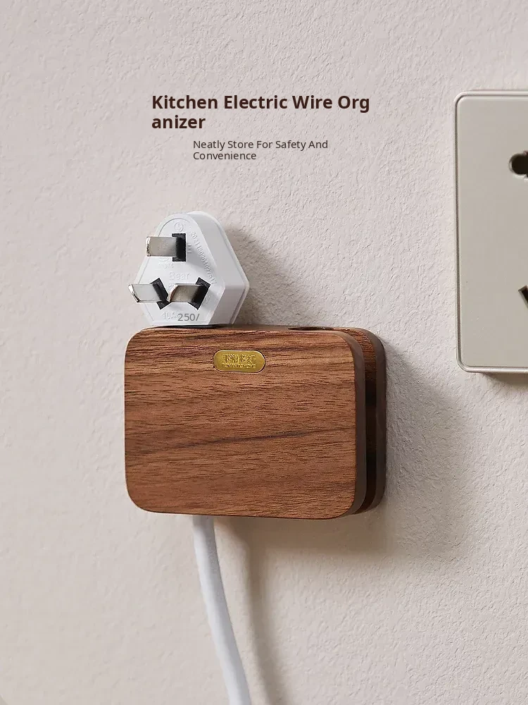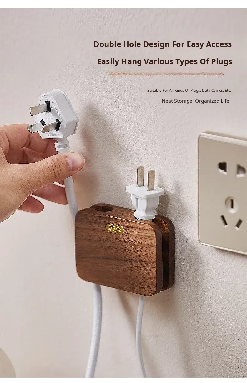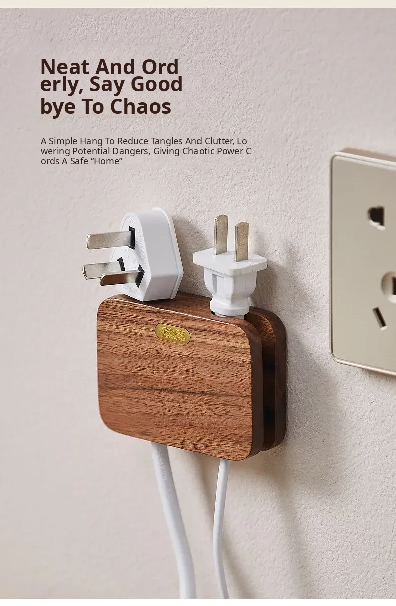 Walnut Wood Wall Plug Holder - No Drill Strong Adhesive Cable Organizer Hook for Kitchen Power Cord Management - The Ultimate Solution for Tidy Spaces!