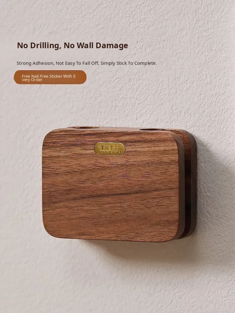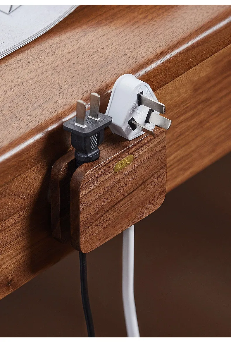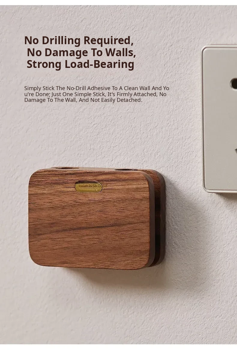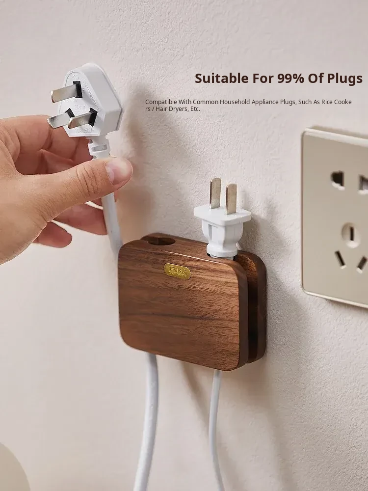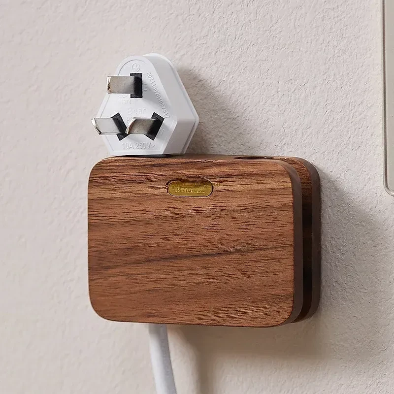 Walnut Wood Wall Plug Holder - No Drill Strong Adhesive Cable Organizer Hook for Kitchen Power Cord Management - The Ultimate Solution for Tidy Spaces!