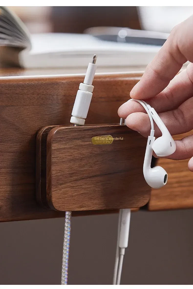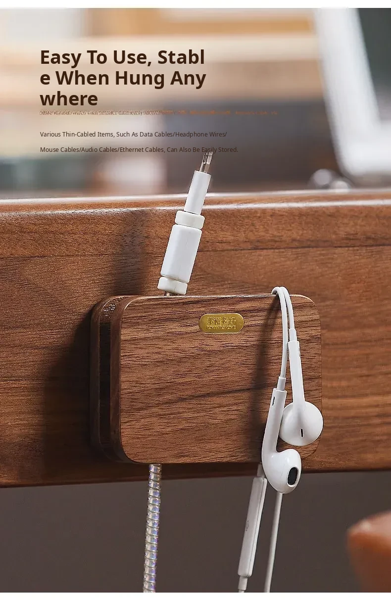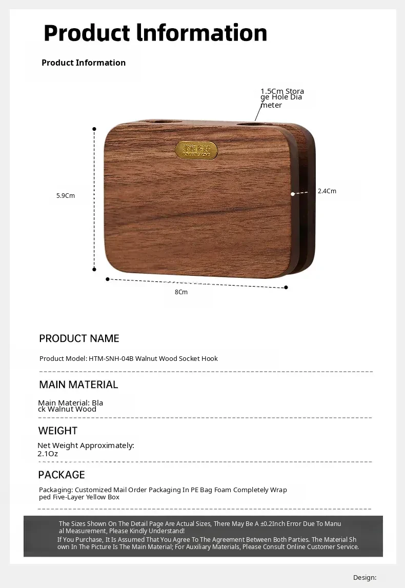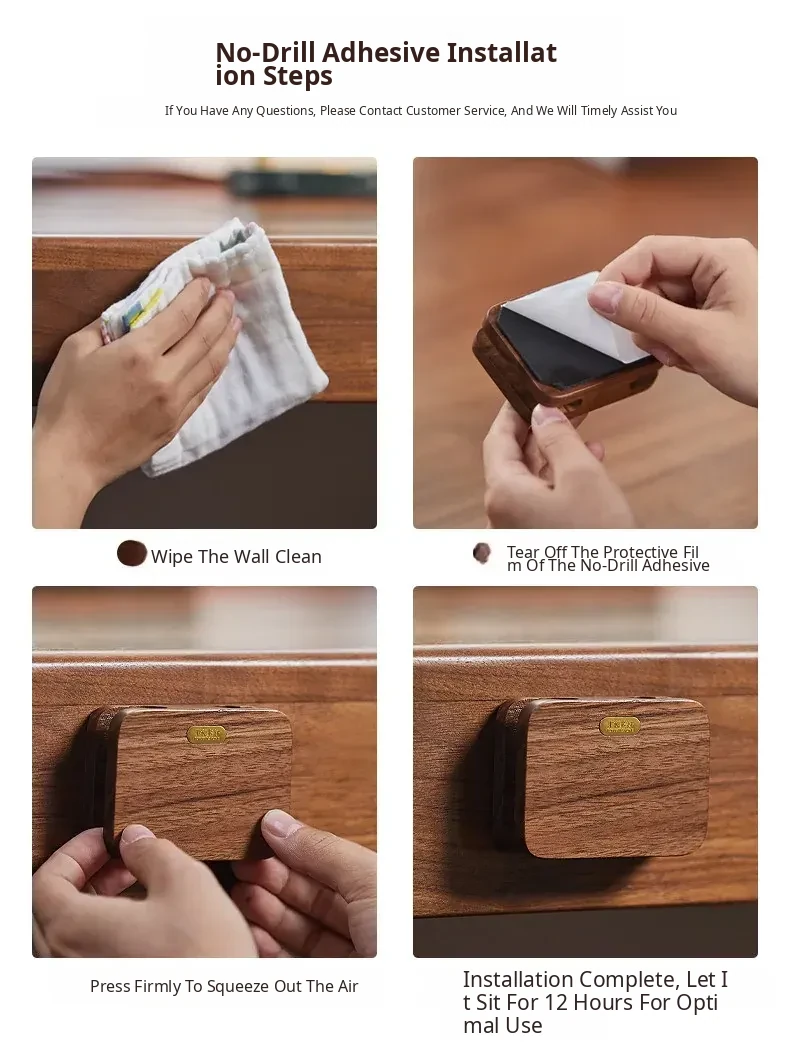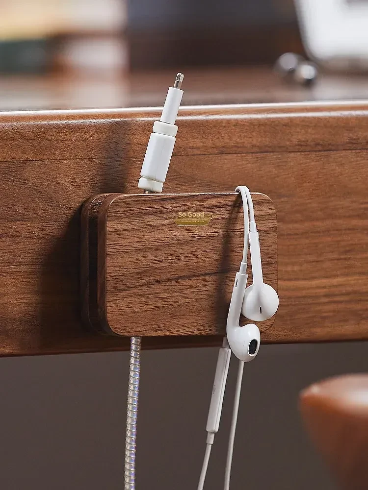 Walnut Wood Wall Plug Holder - No Drill Strong Adhesive Cable Organizer Hook for Kitchen Power Cord Management - The Ultimate Solution for Tidy Spaces!