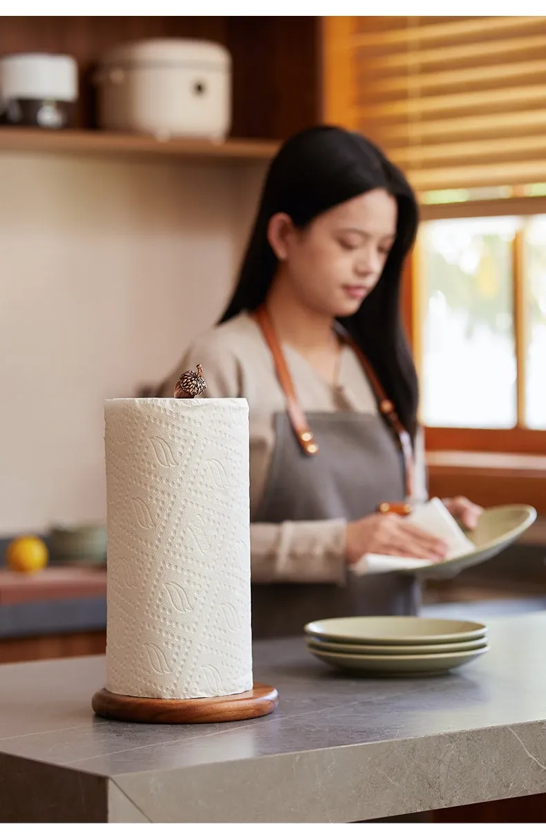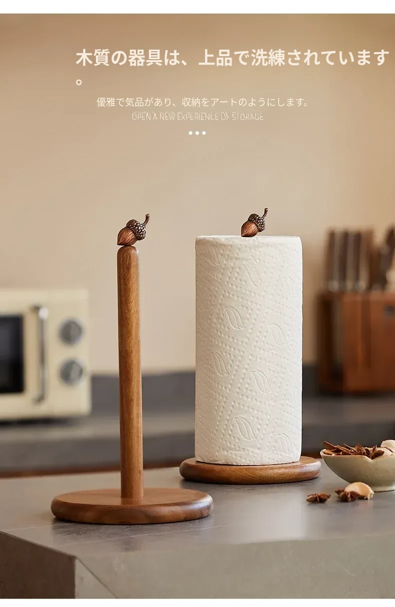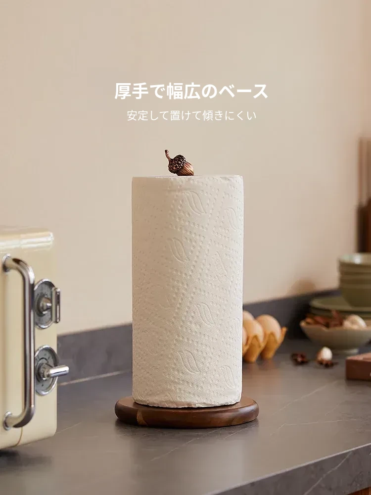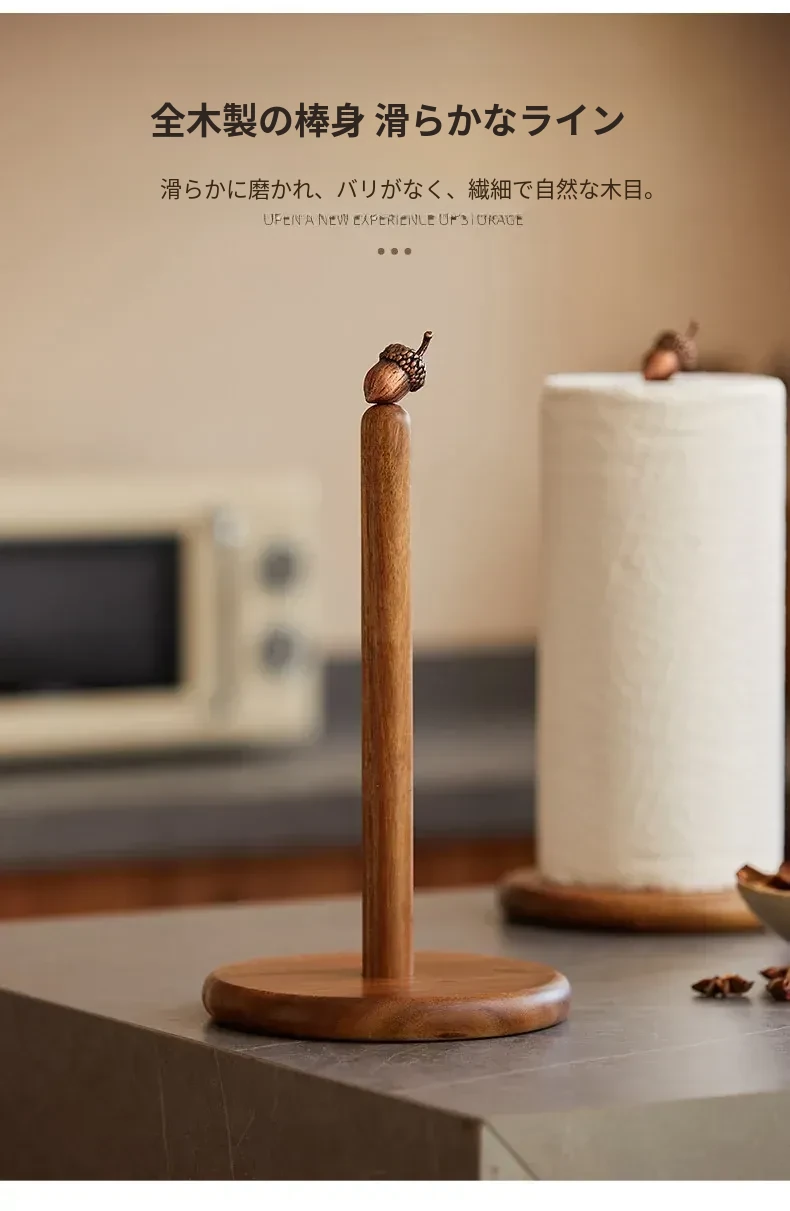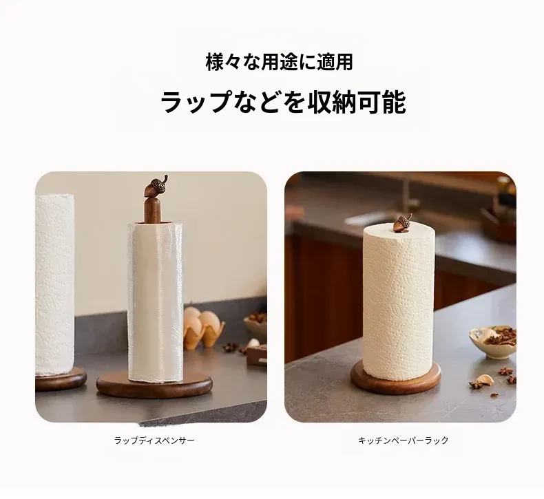 高級感溢れる相思木製キッチンペーパー掛け・デスク用ロールペーパーラック - 穴あけ不要のフィルム収納バーで、スタイリッシュに整理整頓!立てて使える便利なロールペーパースタンド。
