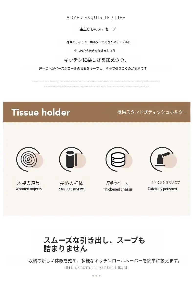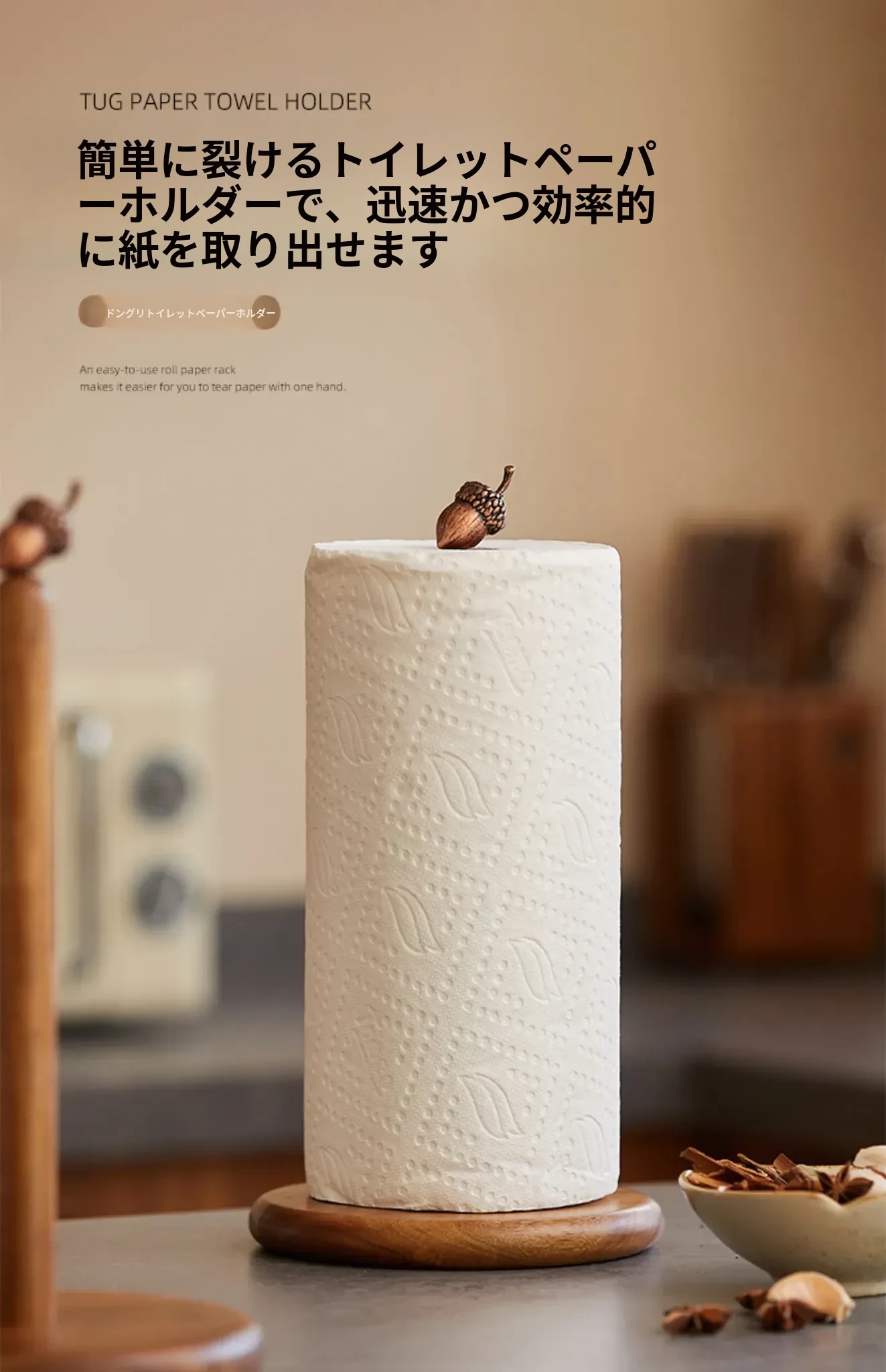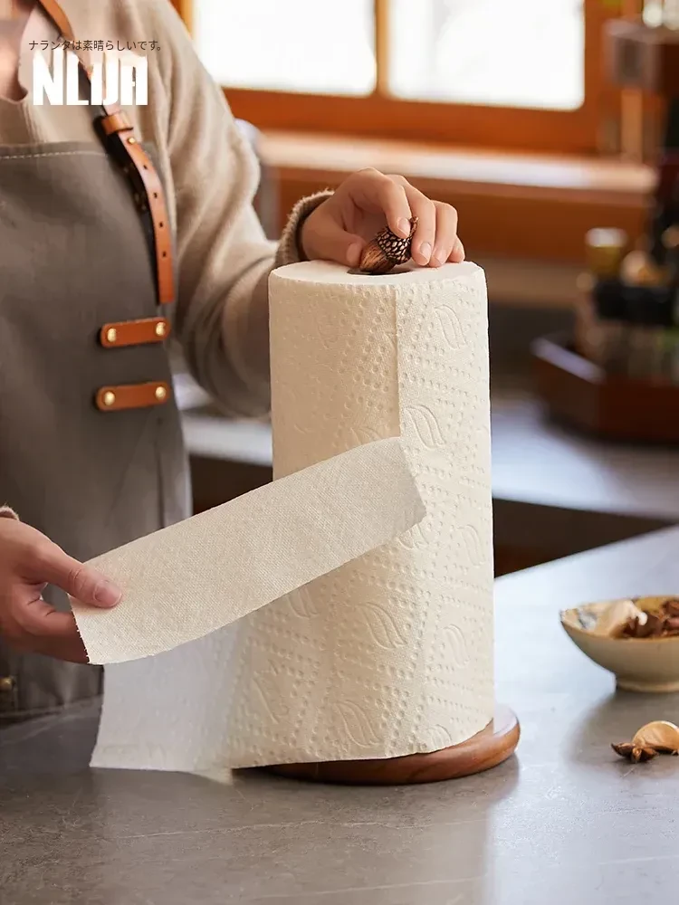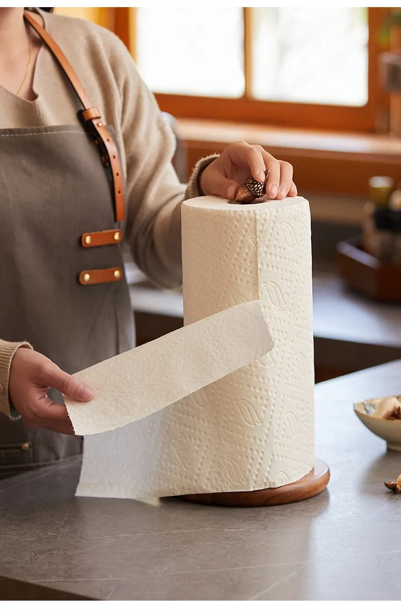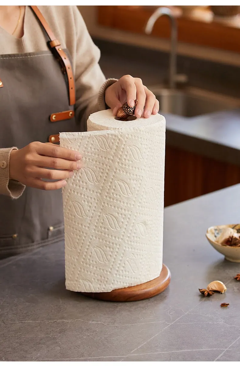 高級感溢れる相思木製キッチンペーパー掛け・デスク用ロールペーパーラック - 穴あけ不要のフィルム収納バーで、スタイリッシュに整理整頓!立てて使える便利なロールペーパースタンド。